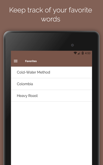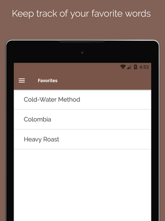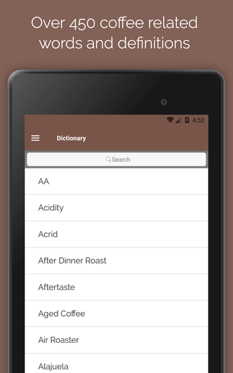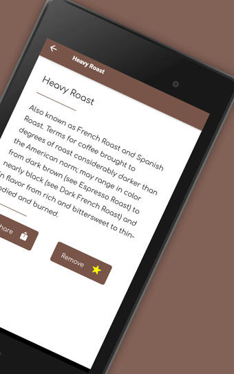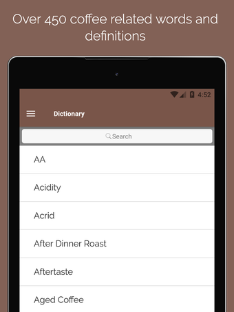 Barista Coffee Dictionary A-Z to bezpłatna aplikacja na Androida opracowana przez Prestige Worldwide Apps Inc. Jest to wszechstronna aplikacja słownikowa dla baristów i miłośników kawy. Aplikacja zawiera ponad 430 definicji kawy, które obejmują wszystko, od klasyfikacji i oceny ziaren po palenie i degustację.